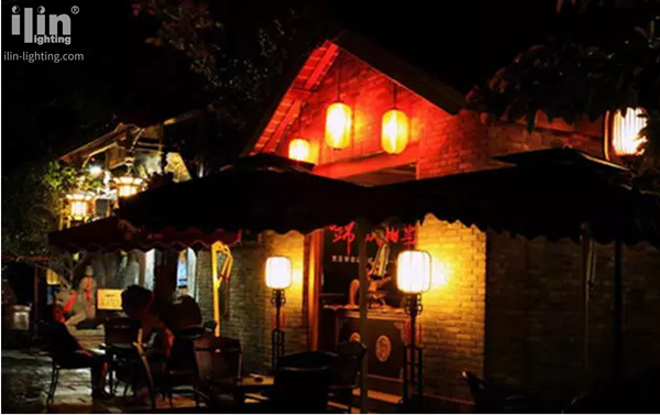 成都宽窄巷子用传统照明灯具突出古巷的传统文化,暖黄色的不变光,带来生活的气息。照明设计与建筑环境相得益彰。