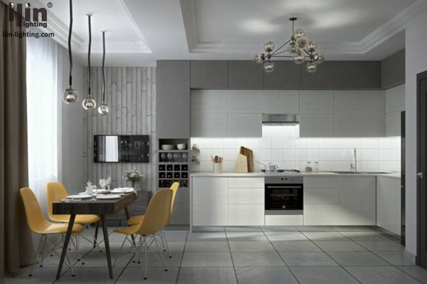 别墅的厨房可以显示主人的品位,这种品位主要体现在一些有创意的设计上,厨房吊柜可以设计一些玻璃门或吊格,柜内安装宜琳橱柜灯,便于存放收藏品或书籍。