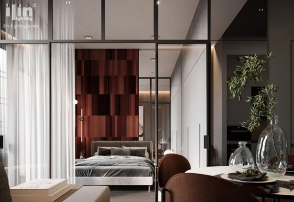 下面宜琳照明ilin要分享的这套案例,全屋以开放式的布局为主,并无太多的空间隔断,客餐厨三个空间以一体式的设计,让入户的第一刻,便拥有身心舒畅的舒适感,而局部照明橱柜灯又增添了一丝温暖。在色调上,尽量沿用契合屋主男士的深色调,让这个仅有44㎡的公寓,拥有触目所及的高级感。