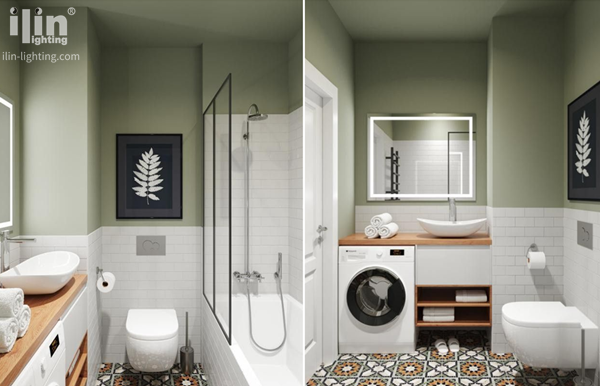 干湿分离是卫生间的标配,镜柜灯很亮眼,洗衣机也放在了卫生间。
