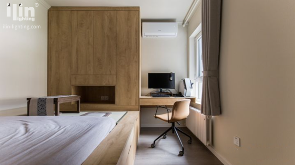 次卧主要考虑父母来时住,屋主选择了与其他空间完全迥异的日式风格,榻榻米床+小茶席,还有收纳和书房功能。