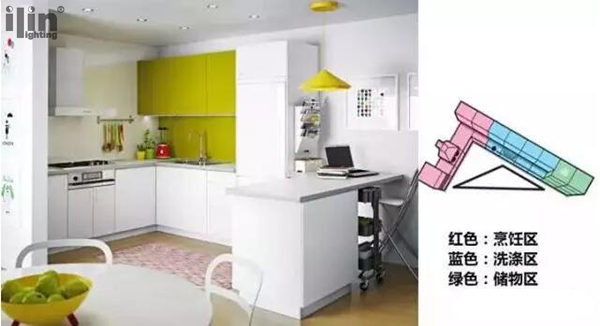 ②不管是哪种类型的厨房,都得在操作台上方安装局部照明灯具,如果有吊柜,可以安装宜琳照明ilin的多种橱柜灯,如柜底灯、柜内灯等等。