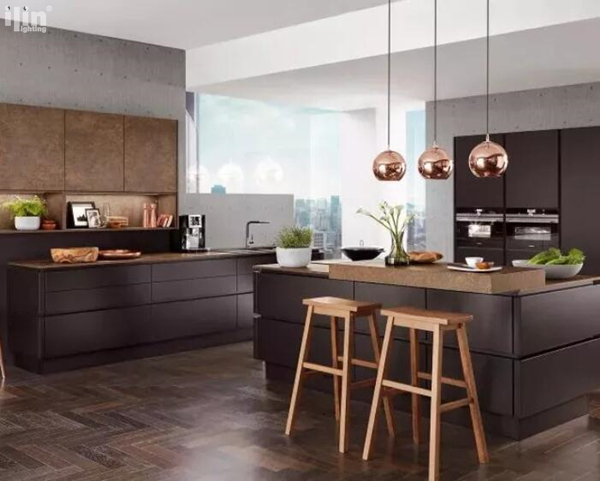 在选择餐厅灯具时,建议大家尽量选择灯罩向下的餐吊灯,一来方便打理二来,光是直接照向餐桌的,色香味俱全的菜菜,在美美灯光下,不是更让人有食欲了么。