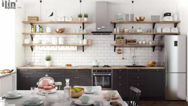 厨房的布局有多种,有一字型、U型、L型等等,空间肯定是越大越好,但今天宜琳照明ilin想要给大家讲一讲一字型厨房的设计技巧。一字型厨房空间较狭窄,适宜小户型家庭,因为小厨房需要对空间高效利用,因此家电、橱柜和操作台等都在一条直线上完成,节省空间。